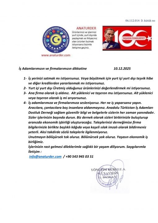 • ANADOLU TÜRKİSTAN İŞ ADAMLARI DOSTLUK DERNEĞİ